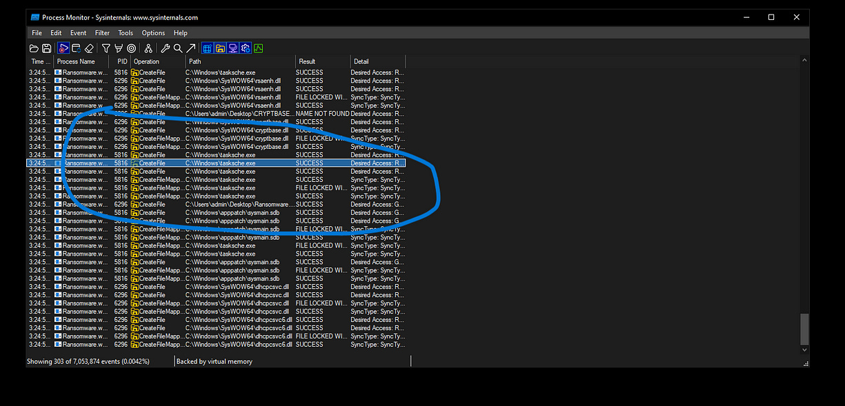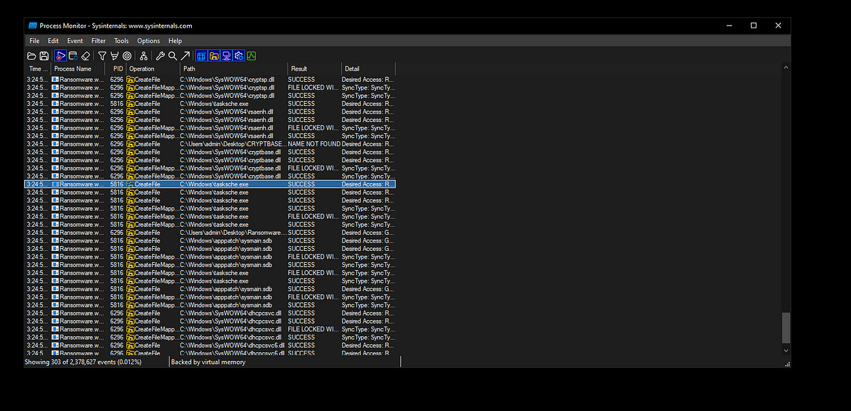 I decided to use Procmon to list the processes utilized by the malware and to monitor which files were created during its execution. Additionally, I examined any changes made to the Windows registry, allowing me to gather more information about the malware’s behavior and the extent of its impact on the system.