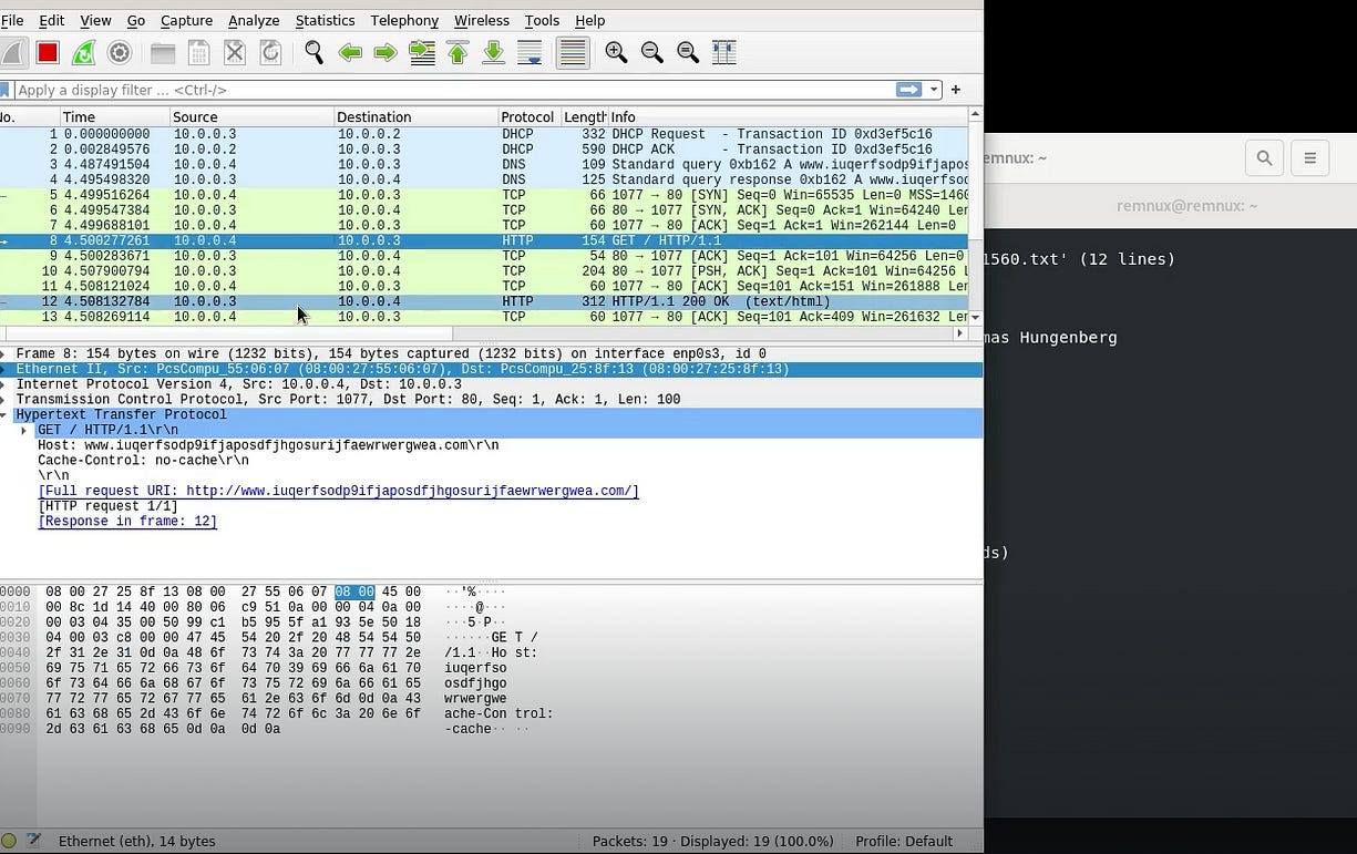 I then decided to use Wireshark to monitor the network communication. I disabled the fake web server to detonate the ransomware and observe its symptoms in real-time, allowing me to capture any malicious traffic and understand how the ransomware interacts with the network.