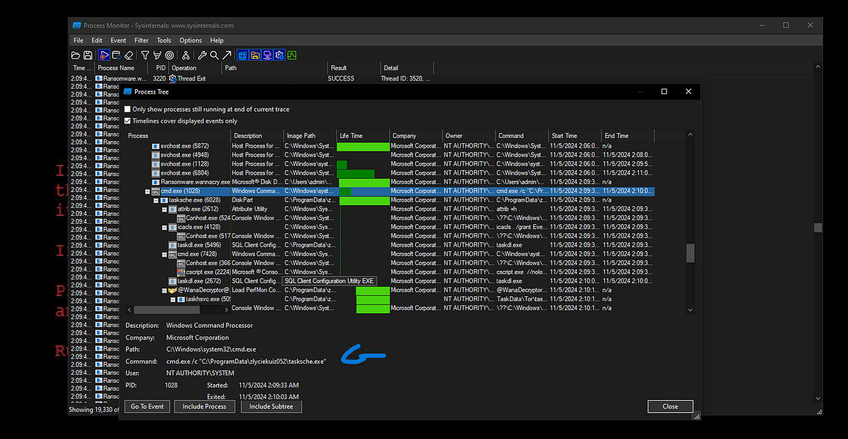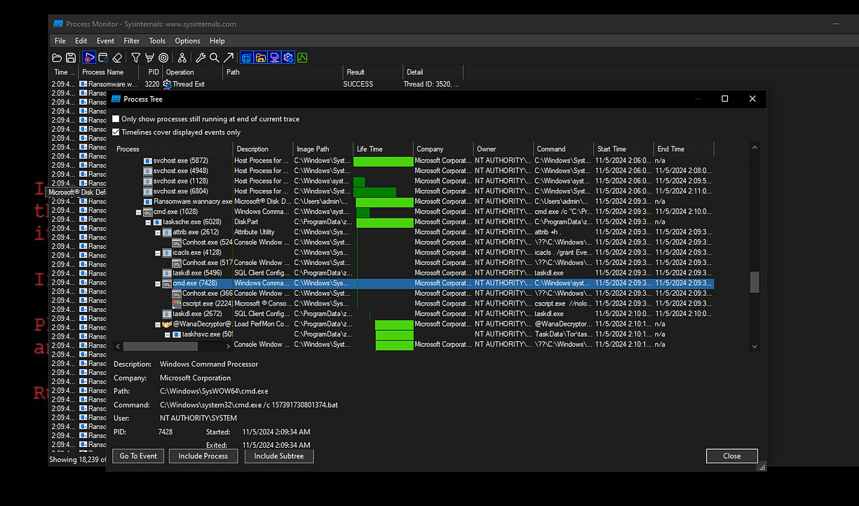 was used to execute various commands. This activity further indicates the ransomware's efforts to control the system and carry out its malicious objectives.