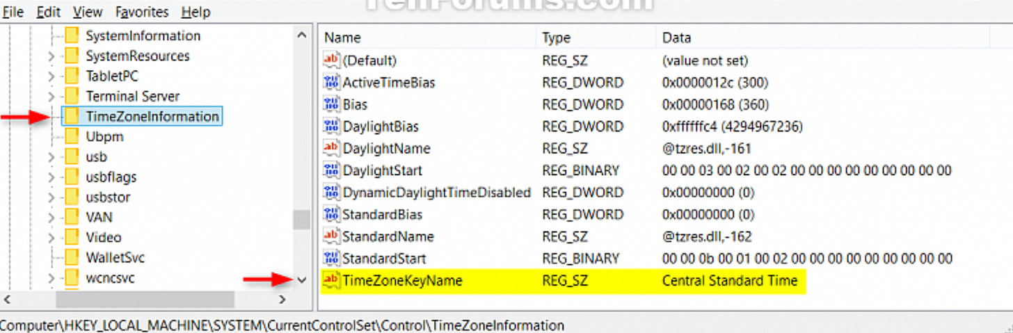 The TimeZoneInformation key, found at SYSTEM\CurrentControlSet\Control\TimeZoneInformation, records the system’s configured time zone. It provides values such as TimeZoneKeyName and ActiveTimeBias that are essential for translating local timestamps into accurate timelines. Since time zone changes are also logged in the Windows Event Log, investigators can track shifts in configuration over time. Correct interpretation of these settings is critical for event correlation across systems, which is why analysts typically work in UTC to eliminate offset errors.