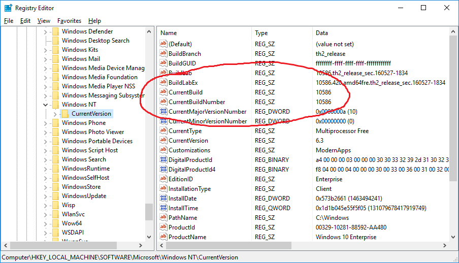 The Current OS Version is found in HKLM\SOFTWARE\Microsoft\Windows NT\CurrentVersion and contains the system’s present identity. Important fields include ProductName (edition, such as Windows 10 Pro or Windows 11 Home), CurrentVersion (major/minor version like 10.0), CurrentBuildNumber or CurrentBuild (specific build, e.g., 22621), and ReleaseId or DisplayVersion (marketing release like 21H2 or 22H2). The InstallDate field provides an epoch timestamp of when the OS was first installed, while RegisteredOwner and RegisteredOrganization show values entered during setup. From a forensic perspective, this gives a precise snapshot of what version of Windows is running right now and when it first came online.